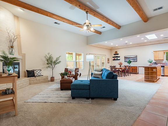 This is the one you have been waiting for! Lovely Desert Ridge single story 4 bedroom with 2.full baths.Open floor plan in which great room, kitchen and dining share a pleasant bright space. Kitchen features island, gas stove, lots of workspace and storage. Spacious primary bedroom with room for sitting area, and private bath with walk in shower, soaking tub, double sinks, and large walk-in closet. Additional 3 bedrooms are cozy and include some built-ins. Refrigerated air ! Great entertaining space in rear yard with bar and bocci ball court! New TPO roof being installed week of August 24th . This is such a pleasant neighborhood where folks take evening strolls to neighborhood park. Sought after schools - North Star, Desert Ridge and La Cueva