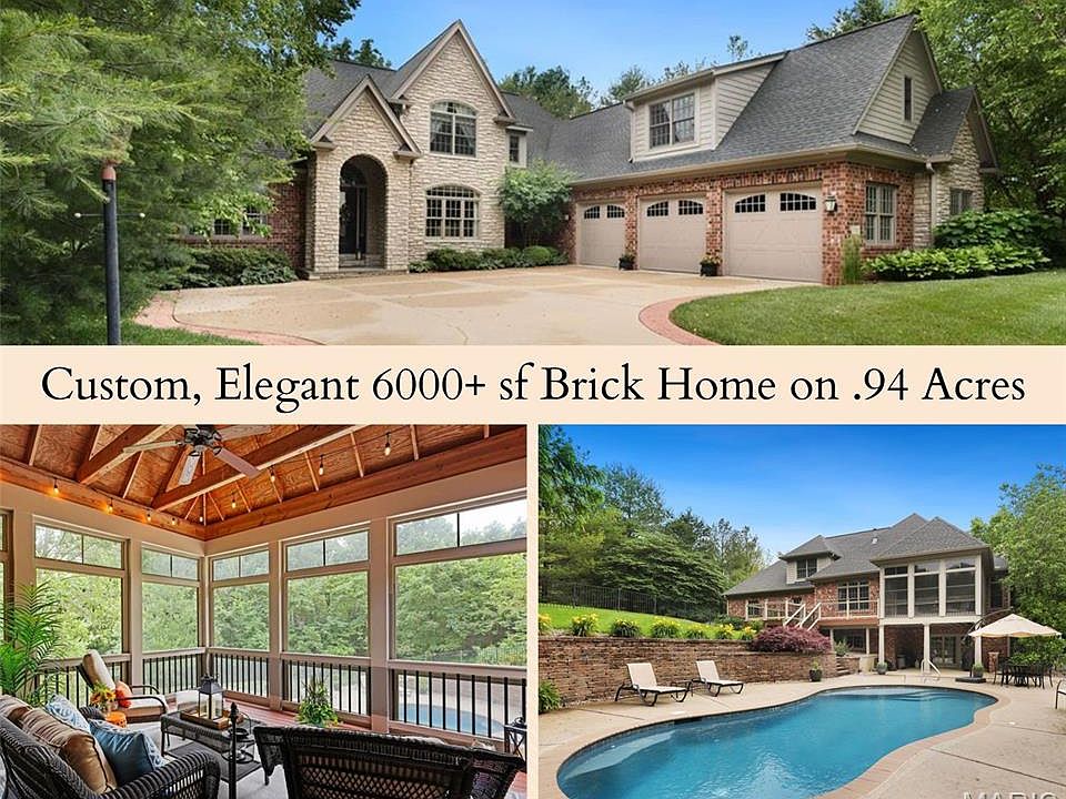 SOPHISTICATED ELEGANCE awaits you at this stunning property on a private wooded .94 acre lot! This one-owner, custom brick home has been immaculately maintained and boasts upgrades throughout! Main floor features a foyer entry, formal dining & office w/French doors, gas fireplace, crown molding & hardwood flooring. Living room boasts built-in bookcase, a stunning gas fireplace w/floor-to-ceiling stone & a dramatic wood ceiling. Fabulous custom kitchen offers granite countertops, tile backsplash, island, breakfast area, upgraded stainless appliances, soft-close cabinetry & an additional wet bar space w/built-in wine cooler & extra cabinetry & additional butler pantry space w/decorative glass doors. Main floor primary suite is spacious w/an extra sitting room, updated bath & massive custom walk-in closet. Laundry room (w/deck & pool access) & 1/2 bath completes 1st floor. 2nd story features 3 oversized bedrooms, 3 full baths, 2nd laundry room & a 40x23 bonus room that could be an additional living space & 5th bedroom. Walkout lower level features stained concrete flooring, wet bar, large family/recreation room, exercise room, 5th full bath & abundant storage space. Vacation at home in the wonderful outdoor space w/lush landscaping, heated, saltwater gunite pool & plenty of area to entertain w/large patio area, trex deck & screened porch. Also oversized additional yard space w/surrounding trees for privacy! Ask your favorite realtor for list of upgrades & features!