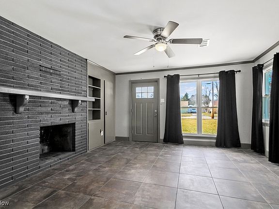 - Description: open floor plan, woodburning fireplace, newer windows, ceiling fan,Flooring: Ceramic Tile