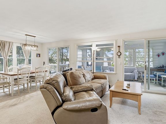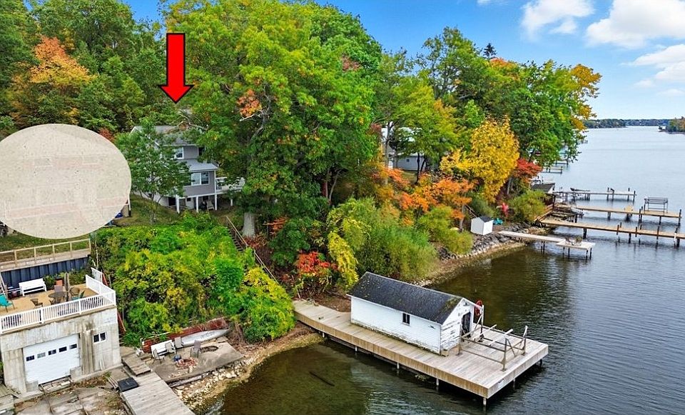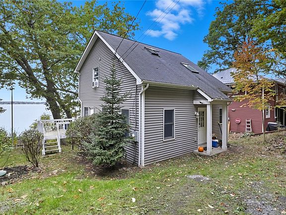 Welcome to this beautiful 3 bedroom & 1.5 bath waterfront 2-story year-round home on Sodus Bay/LeRoy Island! 1,044 sq.' of comfortable living space & beautiful scenic views. The first floor features 1 bedroom & a half bath, kitchen with snack bar, living room/dining room combo with an abundance of natural light and stunning water views, & a cozy 3 season room! Sliding glass door to the deck overlooking the property. 2 bedrooms & full bath on the second floor. Additional features include electric baseboard heat, detached 2.0 car garage, & walkout lower level that is partially finished & adds an additional approx. 500 sq.'. Don't miss out on this absolute oasis that functions all year round! Thoughtfully designed layout to encompass natural light, a spacious feel, and room for everyone! Single car storage garage surrounded by a large dock, perfect for ample storage or an additional hangout space! Boat hoist is not included & can be purchased separately. Notable updates include new dock (approx. 2023) & partial new roof (approx. 2023). No PCD. Seller to only provide permits on file with the Town of Huron. Property purchased in 1973 but completely torn down & rebuilt in 1998. Please do not drive down the driveway. Park up in front of or behind the garage. **Delayed negotiations until 10/28/2025 @ 3:00pm. Please allow 24hrs for life of the offer. Thank you!!**