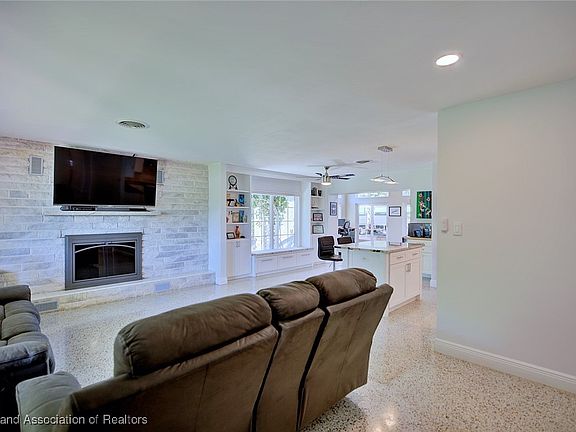 Welcome to your dream home on beautiful Lake Charlotte in Sebring! This home has a ton of upgrades and you will not want to miss it! This meticulously upgraded property offers the perfect blend of luxury, functionality, and resort-style living. As you arrive, you’ll be greeted by a gated (remote controlled) front entry, paver driveway, and lush, resort-style landscaping that sets the tone for this private retreat. Step inside and admire the refinished terrazzo flooring that flows through much of the main living area, accentuated by abundant natural light throughout. The renovated kitchen is a chef’s delight, featuring granite countertops, a large center island, white shaker soft-close cabinetry, and a suite of stainless steel Samsung appliances. The adjacent living room offers comfort and style with a new fireplace, stunning stone accent wall, and custom built-in shelving and cabinetry. The spacious family/multipurpose room boasts 10’+ ceilings with exposed beams and breathtaking lake views, making it an ideal space to relax or entertain. This room could be used as a game room, living room, and more! Retreat to the primary suite, complete with a renovated en-suite bathroom featuring a walk-in shower and dual vanities. The guest bathroom is equally impressive, showcasing a vessel sink and a jacuzzi tub for ultimate relaxation. Step outside into your private backyard paradise. Enjoy the large covered patio area, tranquil koi pond, fire pit, and panoramic westerly facing sunset views over Lake Charlotte. Spend your days on your white sandy beach, or enjoy evenings at the custom beach bar with a fold-down TV—a true entertainer’s dream! Water lovers will appreciate the dock with covered boat lift, a floating jet ski dock (fits 2 jet skis), and plenty of space to soak in the lake life. Into aviation? The property even features a covered metal carport—perfect for a floatplane! Car collectors, hobbyists, or entrepreneurs will love the 25' x 36' red iron detached building with a 16' roll-up door. This insulated metal shop includes a mini-split AC system and 20A power, making it the ultimate man cave or workshop. The home features a metal roof and new Trane AC and air ducts in 2023. This home is a rare find with every upgrade thoughtfully designed to maximize comfort, enjoyment, and lifestyle. Whether you're seeking a peaceful lakeside escape or a full-time entertainer’s haven, this Lake Charlotte beauty has it all! Don’t miss this unique opportunity—schedule your private tour today!