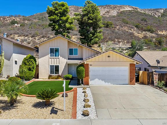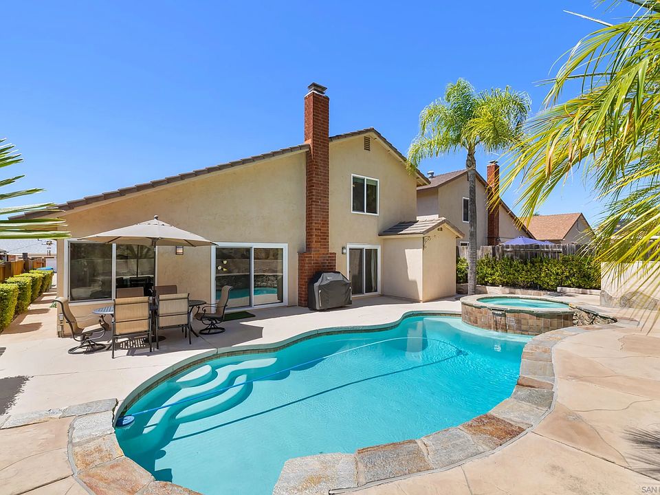 Tucked away at the end of a peaceful cul-de-sac on Stoneview Court, this charming 4-bedroom, 2.5 bath home offers the perfect balance of comfort, convenience, and California living. Step inside to a spacious floor plan filled with natural light, featuring a welcoming living room with a cozy fireplace — ideal for both lively gatherings and quiet evenings at home. The centrally located kitchen connects seamlessly to the dining area and opens to the expansive backyard, making entertaining effortless. The first-level primary suite provides comfort and privacy, creating a restful retreat. Outdoors, enjoy your very own sparkling pool surrounded by lush landscaping, with no neighbors behind — just tranquil views of protected nature. Whether you're hosting a summer barbecue or enjoying a peaceful morning coffee, this backyard sanctuary is designed for relaxation and play. Location Highlights: Situated in the highly desirable San Carlos neighborhood, this home is just minutes from Cowles Mountain where miles of hiking trails and breathtaking views await. Families will appreciate the top-rated schools nearby, including Ralph Dailard Elementary, Pershing Middle School, and Patrick Henry High School. Shopping, dining, and major freeways are all within easy reach, giving you quick access to the best of San Diego while still enjoying the peace of a quiet neighborhood. This is more than a home — it’s a lifestyle. With its sparkling pool, serene natural setting, and unbeatable location, this San Carlos gem offers the perfect opportunity to make every day feel like a retreat.