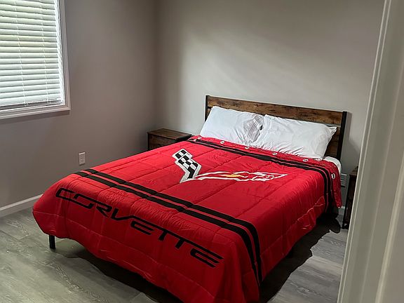 This is an American muscle car-themed Airbnb featuring three bedrooms and two bathrooms, centrally located near Fort Chaffee in a tranquil area surrounded by nature, offering a peaceful environment.