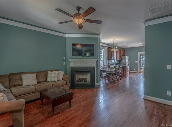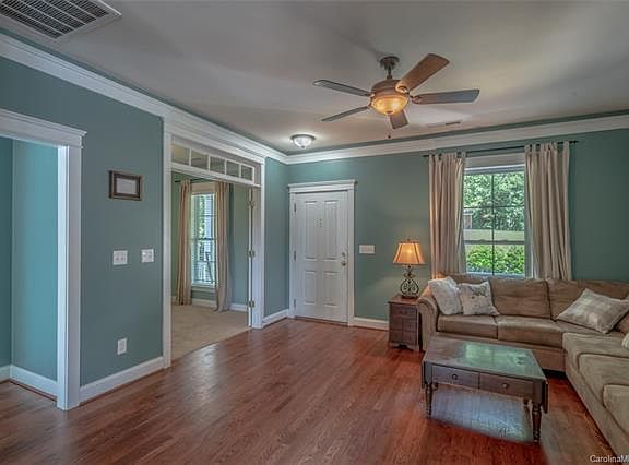 Great home with covered front porch, community Pool and park. Close to shopping and I-77. Inside are beautiful engineered hardwood flooring on main and open floor plan. Enter into great room with gas log fireplace and crown molding. The office has French doors with valances, carpet and closet. Could be used as an office, guest room or bedroom. The great room opens to the kitchen and breakfast area. It features Granite counter tops, built-in microwave, bar area with plenty of room for seating, pantry and opens to the breakfast area. Upstairs is large master suite with sitting area. Could be used as office, sitting area, or work out area. Closets galore- Don't miss the Walk in closet and 2 large walk in attic spaces that could be finished. Master bath with dual sinks, garden tub and separate shower-and another large walk in closet. The separate water closet features another storage area and linen closet. Don't forget to check out the walk in crawl space-plenty of room for storage.