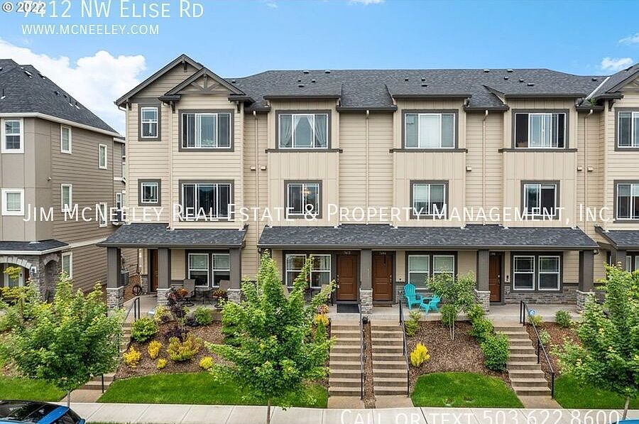 Pets ok! Prime Bethany location! This gorgeous 2 bedroom + office (could be a 3rd bedroom) stands out above the rest with 35k in upgrades. The entry level has the office, half bath, and oversize garage. The main floor features: Open concept which includes the kitchen, living, and dining area. Off the living room is the slider to the balcony/patio. The gorgeous laminated wood flooring is on each level. The kitchen includes: quartz counter tops, stunning designer tile, stainless steel gas appliances, island, microwave, refrigerator, and breathtaking views looking out to the west. The upstairs also includes the laminated wood flooring, washer/dryer, full bath, 2nd Bdr, and primary bedroom. The T.H., also includes AC. This picturesque, newer development, offers walking paths, picnic areas, and nearby parks. Stroll down to Bethany Village and enjoy the restaurants, coffee shops, and the fitness center. Directions: Kaiser Rd, Right on Ridgeline st, Right on Kerron Ave, Left on Olive St, Left on Ellise Ave.