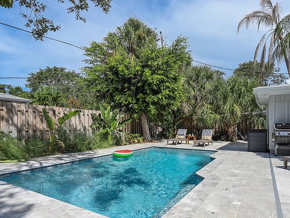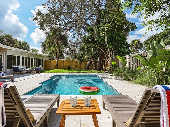 Starfish Contemporary Home is a fully renovated 3-bedroom, 2-bathroom property with a saltwater pool, located near Sarasota's south end, just 2.8 miles from Siesta Key's Crescent Beach. Accommodating up to 8 guests, the home features an open pool, outdoor dining, BBQ, and a professionally decorated interior with high-end furnishings. Highlights include a king master suite, guest rooms with a king and bunk beds, a modern kitchen with a Keurig, and super high-speed WiFi with YouTube TV and NFL Ticket. The fenced yard includes beach accessories, and pool heat is available for an extra fee. One well-behaved dog is welcome with prior approval and a pet fee. Monthly rentals only; non-smoking property.