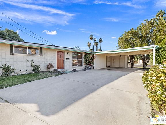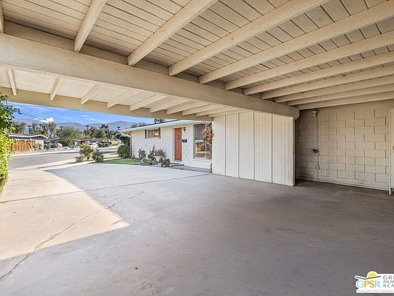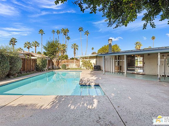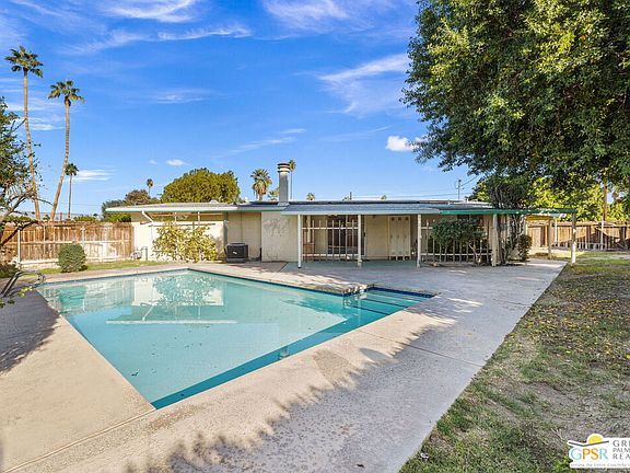 THE ONE you've been waiting for in Palm Desert, where mid-century architecture, clean lines, and an ultra-private pool setting come together on a corner lot with south-facing mountain views. Motor up the drive for a closer look at this three-bedroom, two-bath opportunity where value and location shine. Bring your special touch and enjoy the modernist vibes of block walls, clerestory light, and the optimism of that iconic architectural era. The living and dining areas center around a handsome brick fireplace with hearth and a glass slider that opens to the pergola-covered patio, while the nearby kitchen enjoys great flow and easy outdoor access. Bedrooms enjoy thoughtful separation, and the ensuite primary features a vaulted ceiling, clerestory window, and two closets, while guest bedrooms two and three share a full bath. Carport parking for two plus a nearby storage area adds convenience, and leased solar is another plus. Recent improvements include a newer roof, newer water heater, and a freshly replastered pool. Generous outdoor spaces offer plenty of opportunity to elevate the landscaping and create something truly special, all in a prime Palm Desert setting just minutes from the best of El Paseo.