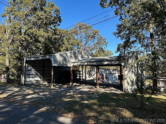 Ft. Gibson Lake property in Taylor's Ferry with room for all the toys! 4-stall boat/RV cover, detached garage w/studio apartment, workshop, double carport and more! Plenty of room for everyone to come and play at lake. Excellent home for full time living or fun filled weekends. Home needs a new family or group to give it some extra care to bring it back to its former self.