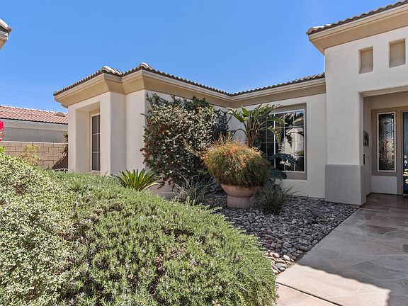 ACCEPTING BACK UP OFFERS. The ultimate backyard entertaining home. Indulge in luxurious desert living with this exquisite property boasting a highly desirable SOUTH exposure backyard pool area and numerous upgrades. The open floorplan seamlessly blends indoor and outdoor living spaces. The main living areas feature a Versaille lay neutral travertine tile; bedrooms, den, and casita feature plush designer carpeting. This house is easily maintained with a built-in vacuum system. The gourmet kitchen showcases granite tile counters, custom maple cabinetry, and designer lighting. The great room, complete with a wet bar and fireplace, seamlessly connects to the south facing outdoor backyard oasis. Primary bedroom suite, guest quarters, 4th bedroom which is currently used as a den, laundry room, and powder room complete the interior layout. The extended covered patio, equipped with a sound system, TV, specialty lighting and professional grade heaters, overlooks the pool and spa, with a large outdoor kitchen-bar area. Guests will love the the privacy of the detached front courtyard casita. This home is TURNKEY FURNISHED with leased SOLAR for added value. Don't miss this truly exceptional find!