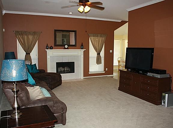 OPEN AND SPACIOUS IN THE PERFECT NEIGHBORHOOD. DECORATOR COLORS, WARM AND RICH. TALL CEILINGS, CROWN MOLDING AND LANDSCAPED YARD. 1556 SQ. FT, ONE STORY, 3 BED. 2 FULL BATH, 2 CAR, HUGE FAMILY LIVING WITH BEAUTIFUL FIREPLACE AND MANTEL. OPEN KITCHEN AND BREAKFAST FOR ALL YOUR FAMILY MEALS. COVERED PATIO AND GREAT BIG BACKYARD FOR THE KIDS TO PLAY.