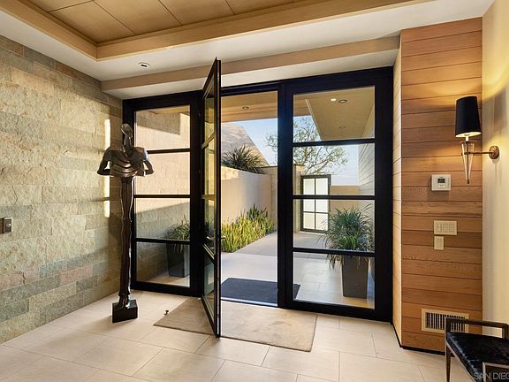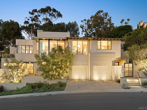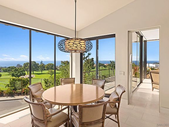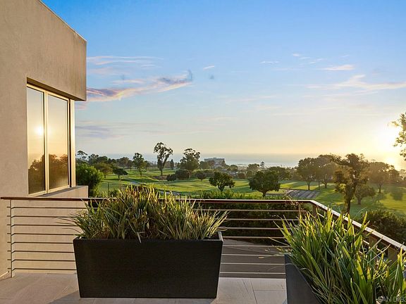 With captivating views of the Pacific and rolling greens of La Jolla Country Club, this warm California Contemporary is a sanctuary of sumptuous design and purposeful living. A warm tonal palette and visual textures soothe the eye and embrace sparkling views, providing interior and exterior spaces with a feeling of serenity and luxury. The stunning home, designed by Gold List-awarded architect, Thomas Jakway, is storied in structural and design integrity. The limestone flooring reflects its coastal location while the exquisitely appointed kitchen, with 2 Miele dishwashers and SubZero refrigeration for food and wine, captures picture-perfect views and embody a life-well-lived. The library, tastefully appointed bar, sophisticated bedrooms, terraces, and custom ambient lighting, further enhance the home’s quiet elegance. A cocoon of mature plantings surrounds the home and a luxe gas spa and fireplace create an elevated outdoor experience.
