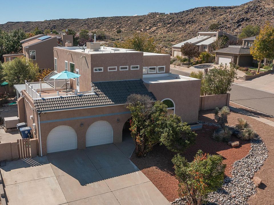 *Open Houses Sat 10/18 & Sun 10/19, 11-2 PM.* A Must-See Gem in One of NW Albuquerque's Most Sought-After Neighborhoods - No HOA! Nestled in the heart of a highly desirable area, this thoughtfully designed home features an open floor plan and expansive windows that welcome the space with natural light. Enjoy seamless indoor-outdoor living with direct access to a serene backyard patio complete with a hot tub & fountain--ideal for entertaining or unwinding in privacy. The spacious layout flows effortlessly through the kitchen, living, family, & dining areas, creating a bright, welcoming atmosphere throughout the home. This 3 BED, 3 BA home is beautifully updated & has it all. Excellent views from the primary suite balcony, corner lot with RV pad, family friendly neighborhood & much more!