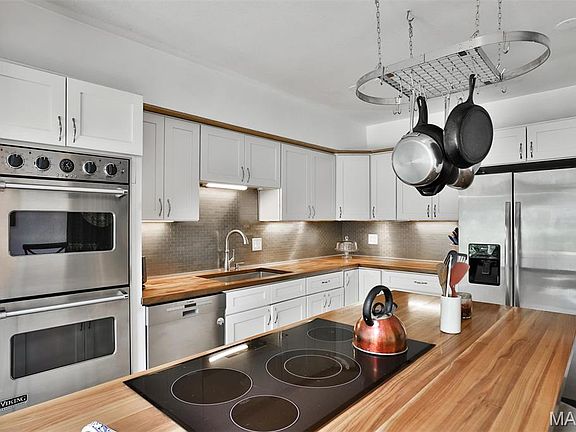 Picture perfect gingerbread with extensive stained glass, arched doorways & so much charm throughout! Fantastic living room with wood floors, Carrera marble fireplace, built-ins, step up to dining room with accented ceiling, plus awesome sitting room with so much natural light. Updated white kitchen with butcher block counters, center island, stainless appliances, induction cooktop, Viking double ovens & breakfast room with sliding door to backyard & patio. 2 great bedrooms, updated Carrera marble bathroom, amazing second floor with bedroom & huge rec room for lounging etc! Partially finished walkout LL with space for office or bedroom plus very cool full bath & dressing area, great storage, 1 car garage & more. With 2,300+sqft plus addtl 414sqft downstairs, there’s so many options for living space here! Super convenient Richmond Heights location with award winning MRH Early Childhood Center, easy highway access & all the shops & dining you could ask for.