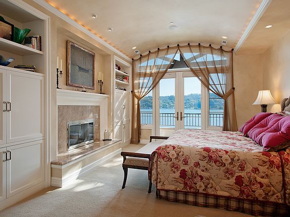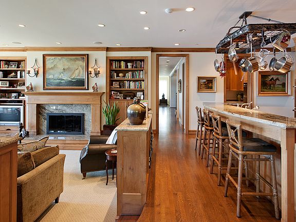 Powerful! Noted by many to be the finest available quality of talented Craftspeople. Striking profile of stone and stucco. Illustrating elegant, exacting finishes. Warm, rich millwork. Full, connected coach house. Extraordinary 1397sf covered boathouse area thought never to happen again (incl. play quarters). Pillars rise up; dark beams lend authority. French doors, storied library, coved ceil, Venetian, French glass crowns. Intriguing circle windows. 105' on Lake.