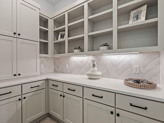 Stunning Single Story featuring 4 Bedrooms, 3.5 Bathrooms, Study w/ Storage, Optional Flex Room, Optional Hidden Kitchen, Covered Rear Patio + 2 Car Garage. Striking Kitchen w/ Large Island featuring Custom 42” Cabinetry w/ Glass Front Upper Display Cabinets, Upgraded Quartz Countertops, Stainless Steel GE CAFE' Profile Appliances, and Accent Lighting. Vaulted Ceiling Family Room and Adjacent Casual Dining make a Plentiful Great Space! Serene Owner’s Suite is tucked away for a more Private Feel offering a Dual Vanity Bath, Free-standing Soaker Tub, Walk-in Shower w/ Bench, and Double Closets connecting to Utility. Central Study, Convenient Drop Zone and Oversized Utility off Garage. Security System, 2” Blinds, Full Gutters, Zoned Sprinkler System, Tankless Water Heater, Fully Sodded Yard + Landscaping Package all included!