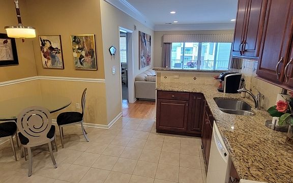 Immaculate, move-in-ready TOP FLOOR unit in building 7 is conveniently located NEXT TO THE CLUB HOUSE of this scenic community. This 1768 SF Colfax model is in a Del Webb 55+ Active Adult Community has beautiful upgrades throughout. Enter into this meticulously maintained unit and immerse yourself in the large, sun filled open living space. The foyer leads into a bright living room & dining room next to a den separated by beautiful French doors. LR, DR, and den floors are hardwood, the 2 BDRS carpet. The modern EIK has tile floor, decorative tile backsplash, wood cabinets, a pantry, & white appliance. Off the kitchen is a storage/laundry room with stackable washer and dryer. There are ceiling fans, and decorative moldings throughout the unit and plenty of large closets & storage space. Enjoy the beautiful views from the private balcony just off living room. This unit comes with 1 under the building deeded parking spot. Wanaque Reserve offers wonderful water features, views of the Ramapo Mountains, close to walking trails, close to shops and major highways. The complex was completely renovated in 2022. The 20,000 SF clubhouse has a large open lounge with fireplace, caf , ballroom, movie theater, exercise room, sauna, indoor and outdoor pool, billiards room, arts & crafts room and more than 40 clubs & activities including pickleball, tennis, Mah Jong, canasta, poker, travel club, gardening club, and so much more. This community is a 24/7 gated community