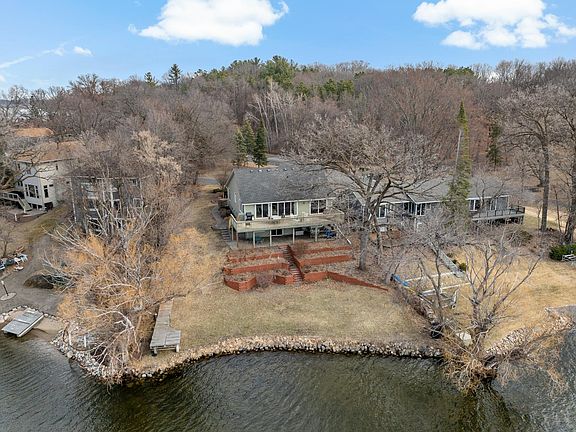 This highly desirable one story, 3 bedroom, 3 bath, 2 stall garage lake home is nestled on .32 acres of Fish Lake with 98 feet of shoreline in Maple Grove. The main level is a joy for entertaining with living room, dining room, wet bar, and Chef’s kitchen all while taking in breathtaking views of Fish Lake along with Fish Lake Regional Park. Main level owner’s suite has 3/4 bath, two sinks, walk-in steam shower, gas fireplace, ceiling fan and sliding glass door to deck providing a panoramic view of Fish Lake. The main level Chef’s kitchen has Wolf induction 5 burner cooktop with downdraft ventilation to outdoors, built in Miele dishwasher, built in GE refrigerator, granite countertops, soft close cabinets and drawers, undercabinet lighting, cherry wood cabinets, eat in kitchen center island, Italian blown glass lighting fixtures overhanging center island, extensive pantry space along with Gaggenau double oven. The upper Gaggenau oven is a combination steam and convection. Lower oven is convection with rotisserie. Outdoor deck for relaxing, entertaining, and grilling all while taking on the spectacular views of Fish Lake. The lower level walk-out to patio has family room, bedroom, gas fireplace, second kitchen, office, full bathroom, two utility/storage rooms along with additional storage area under steps. Home has super efficient geothermal heating and air conditioning. Boat dock is included with sale. Your lake lifestyle provides opportunities for boating, fishing, swimming, skiing, snowmobiling, skating and your place in the sun. Just 25 minutes from downtown Minneapolis. No need to sit in traffic for the trip up North!