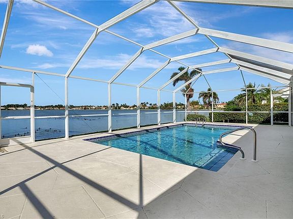 Come step inside this freshly painted inside and out lakefront home with Western exposure. The light and bright great room floor plan opens onto the gracious screened lanai and pool with magnificent views. With just under 1,400 sq ft under air, this three bedroom and two bath home features impact doors and windows, plantation shutters, granite kitchen counter tops, a new front screened door and all new plumbing in 2022. Emerald Lakes offers incredible amenities such as a community pool, community clubhouse, pickleball courts, tennis courts, bocce courts, a fitness center, and a community boat dock. Incredibly low HOA fees. Centrally located minutes from the Vanderbilt Collection, Mercato and the Vanderbilt beach area, Emerald Lakes offers the ultimate Naples lifestyle.