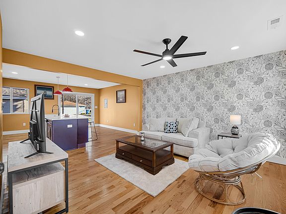 Modern kitchenQuartz countertopsStylish subway tile backsplashThree bedroomsDesigner accent wallAbundant natural lightRecessed lighting