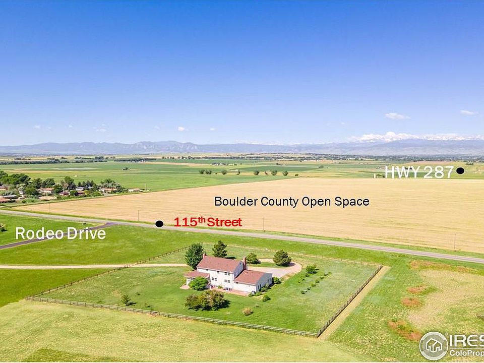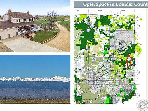 OWNER CARRY FINANCING possible. 10 Minutes to Boulder! Live large on 3+ acres, at the top of the hill, surrounded by Open Space. This pre-inspected meticulously cared for One-of-a-Kind GEM sits perfectly placed between majestic mountains and all your modern-day conveniences. Enjoy your own 3.7-acre AG zoned homestead tucked back off a quiet country road and facing west overlooking Boulder County Open Space. There is an irrigation well to water 4000sqft of land & a sprinkler system. The septic is perfectly sized for 6 bedrooms. Lots of extra room for parking those larger vehicles on your wide gravel circular driveway. Upon arriving to this home, you will be greeted by a privacy gate with 1 acre of fully fenced in security for your pets and little ones; you will notice the freshly painted exterior, newer roof, and a flagstone patio & walkway. Summer landscaping include fruit trees, flowers, new front yard sod, and a peaceful water feature. This classic country style home is adorned with a wraparound porch that hugs the east, west, and southern sides of the home keeping it cool in the summer and allowing warmth in the winter. Inside you will find 4 bedrooms and 3 baths, a full unfinished sunny basement & bonus room in the attic. The main floor has sun drenched rooms with gleaming hickory hardwood floors. The kitchen is room enough for two to cook with generous slab granite surfaces, island with breakfast bar, stainless appliances, gas range/oven, and triple bay sink. Formal dining is next to kitchen for ease of serving. The hearth room is a special place to gather, plan meals, and enjoy comforting warmth from the rustic brick wood-burning fireplace. An additional fireplace is found in the oversized living room. The upper level has a luxurious primary suite with 5-piece bath and jacuzzi tub. The laundry room is designed for organization, W/D incl, and deep utility sink. Large garage for a work truck and on-site RV parking.