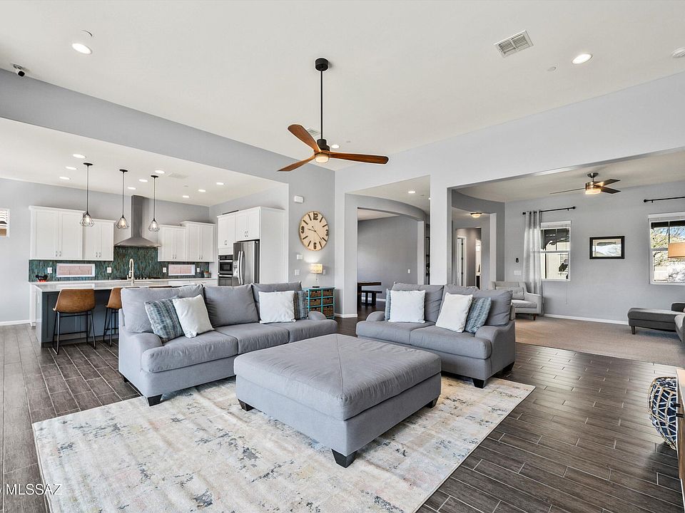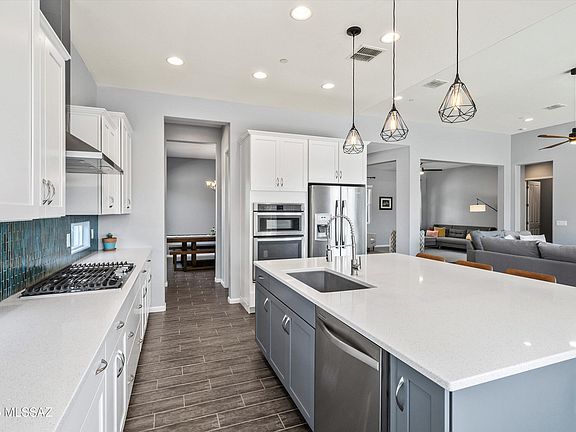 Seller to credit the buyer $12,000 in closing costs. Welcome to one of Dove Mountain's most desirable gated communities, where everyday convenience meets the beauty of the Sonoran Desert. This bright, airy home is designed with busy lifestyles in mind, offering low-maintenance luxury and room to grow. Soaring vaulted ceilings and oversized sliding patio doors create a seamless indoor-outdoor flow, ideal for hosting, relaxing, or soaking in those iconic mountain sunsets.The open concept kitchen is as functional as it is stylish, featuring shaker cabinetry, stainless steel appliances, a gas stove, & a spacious walk-in butler's pantry, perfect for keeping everything organized and out of sight. The generous floor plan offers privacy and flexibility, w/multiple bedrooms dedicated laundry. The spa-inspired primary suite is your personal retreat, complete with a soaking tub, oversized walk-in shower, and a spacious closet for streamlined mornings. A 3-car garage provides ample storage for everything from gear to groceries. Step outside and enjoy direct access to Dove Mountain's vibrant lifestyle. Community amenities include pickleball courts, a playground, basketball court, grassy fields, a dog park, and clean restrooms, all connected by scenic walking and biking trails. It's easy to stay active, connected, and relaxed, all just steps from home. With access to world-class golf, miles of desert hiking, and top-rated schools nearby, this home offers the perfect blend of elegance, efficiency, and Arizona charm. Don't miss your opportunity to live in one of Northwest Tucson's most sought-after communities. Schedule your private tour today.
