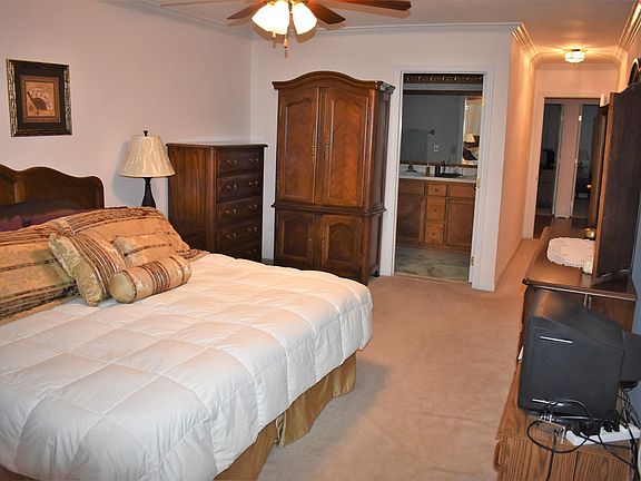 Unique, Custom Built, One Owner Home. One level living. +/- 1710 Sq.Ft. Huge Master Bedroom w/Custom Closet. Fantastic Kitchen w/Corian & Butcher Countertops, Hardwoods, Stainless Steel Double Oven, Breakfast Bar, Counter Depth Refrigerator & Lazy Susan, Pull Out Drawers in Island and Wine Rack. Large Great Room w/Wood-burning Fireplace & Lighted Trey Ceilings. Sunroom w/Gorgeous Windows. Big Bedrooms. Whirlpool, Jetted Tub in Guest Bedroom. Both baths with heaters in ceiling. Pull Down Attic Storage. Vinyl Siding. Privacy Fenced Back Yard. 1 Car Main Level Garage & 1 Car Detached Garage/Workshop. Open Deck. Storage Building. Lots of Parking. All Electric. Per Seller: Electric Water Heater ~ 2022; Electric Panel ~ 2022; Roof on house, detached garage & storage shed ~ 2019; Heat Pump that was brand new but was not put in until ~ 2015. Husband was in the HVAC business.
