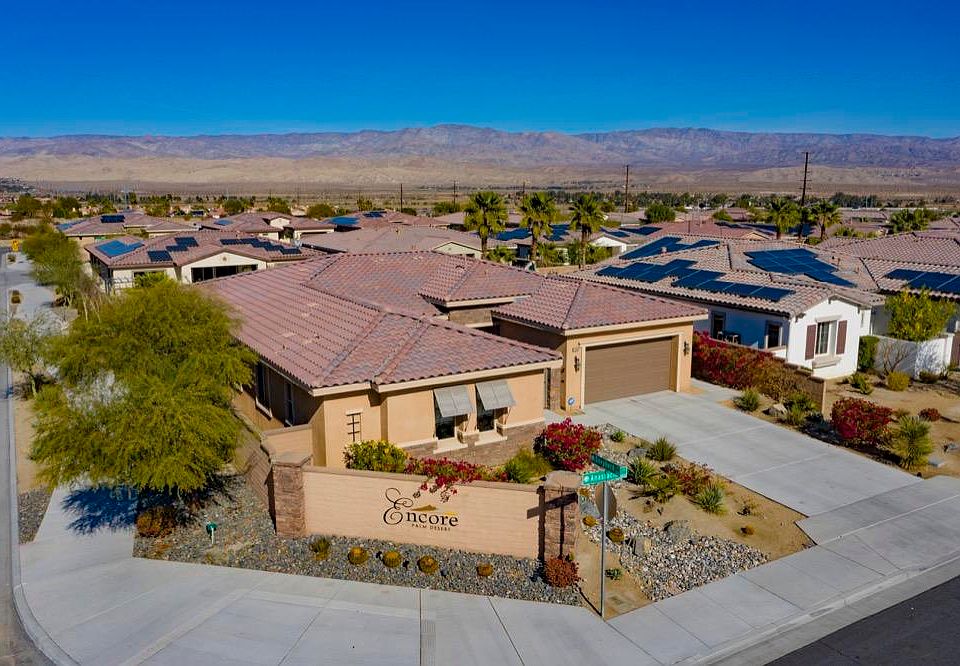 Beautiful home located in Encore Palm Desert! Homes in this area do not come on the market often! This home features a wide-open great room, kitchen and dining room making it the perfect family living or entertaining space. Soaring 10' ceilings combined with lots of windows makes this a light and bright home. You will not be disappointed with the cook's kitchen, complete with double oven, stainless steel appliances, pull outs in cabinets/drawers and center island. Additional room off the living room is great for an office/den or even an extra bedroom. Three additional, generous size, guest bedrooms and a master suite with access to the back patio. Master bathroom includes spa tub, tile shower, pull outs in cabinets and a spacious walk-in closet complete with built-ins. Let's not forget the spectacular back patio that has professional landscaping, beautiful mountain views and plenty of room to build your dream pool/spa. This is a remarkable home and won't last long!