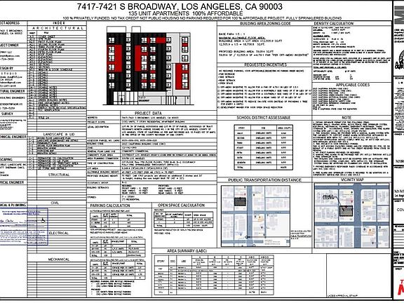 Fully entitled ED1 project for 134 affordable units. Size of the lot is 12,500SF and its zoning is LAC2-1VL-CPIO. Currently existing on the property is a 99 centers Happy Bargain Shop that is paying $4,400 a month and a can recycling center that is paying $1,750 per month. Both those tenants are on month to month leases. The ED1 project is fully entitled with an attractive unit mix of (110) 1 BR + 1 Baths & (25) studio units.