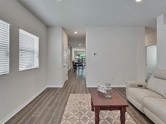 Welcome to this beautifully maintained 3-bedroom, 2-bath Queensgate floor plan, ideally situated in the vibrant and amenity-rich Waterset community of Apollo Beach. Built in 2018, this elegant single-story home blends comfort, style, and functionality, making it perfect for families or anyone seeking modern living in a resort-style setting. From the charming front entry porch, step inside to find a versatile formal living area that offers the ideal space for a home office, sitting room, or flex space to fit your lifestyle. The open-concept design flows seamlessly into the kitchen, dining area, and spacious family room, where large sliding doors lead to a gorgeous lanai with pavers and partially fenced backyard—perfect for relaxing in privacy or entertaining guests. The gourmet kitchen is a standout feature, showcasing 42-inch Echelon Salermo white and linen cabinetry, Granite Crema Caramel countertops with a G-3 demi bullnose edge, a large kitchen island, elegant backsplash, and stainless steel appliances including a gas stove and the microwave, replaced in 2024, adds a touch of modern convenience. Throughout the main living areas and wet zones, you'll find durable and stylish wood-look tile flooring, with plush carpeting adding warmth in all three bedrooms. The owner’s suite offers a peaceful retreat with a luxurious ensuite bath, complete with double vanities, an oversized walk-in shower, and a spacious walk-in closet. Additional features include nine-foot ceilings and recessed lighting throughout the home, a generously sized laundry room equipped with a washer and a 2024-updated dryer, plus built-in cabinets for added storage. A two-car garage offers ample space for vehicles and belongings, while the backyard's beautiful paver patio invites outdoor dining or quiet evenings under the stars. Living in Waterset means access to an unmatched lifestyle. Just moments away is The Waterset Clubhouse, where you’ll find a resort-style pool, lap pool, state-of-the-art fitness center, basketball and pickleball courts, sand volleyball court, game room, and a reservable gathering space. The community also offers the Waterline Station Pool, over 12 miles of scenic trails, multiple parks and playgrounds, serene lakes, and beautifully maintained green spaces. With nearby shopping, dining, top-rated schools, and convenient access to major highways, this home offers not just a place to live, but a way of life. Don’t miss the opportunity to own a stunning home in one of Apollo Beach’s most desirable communities. Schedule your private tour today!