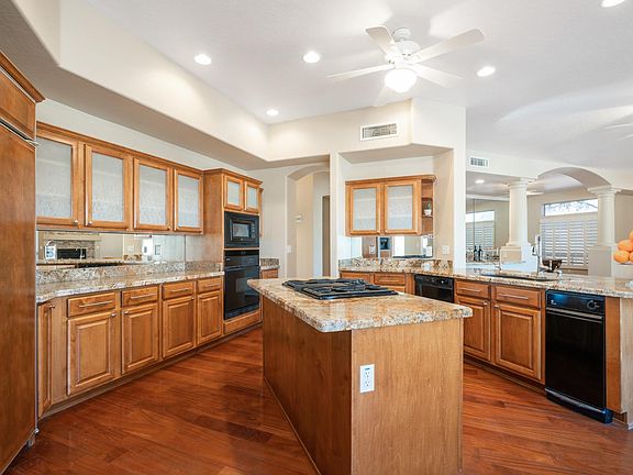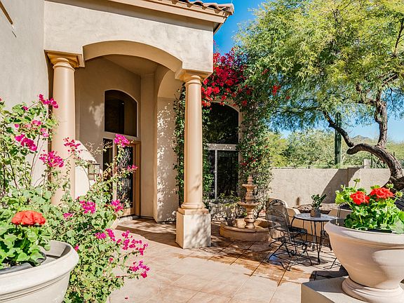 Entertainer's Paradise in a resort-style, master-planned gated community! Large, gorgeous cul-de-sac family home in beautiful Las Sendas. Large backyard with pool, fountain, fire pit, gas grill covered seating and putting green. 4 bedroom (possible 5th) all with ample walk-in closets. 3 and 1/2 baths. Open concept large great room with media wall and gas fireplace. Spacious, sunny eat-in kitchen with breakfast bar and ample cabinetry. Pool table room complete with with wet bar and pool table. Large dining room and second living room with 2nd gas fireplace. Spacious Master suite offers a sitting area, private balcony to take advantage of the spectacular mountain views and 3rd fireplace. Custom amenities are welcoming upon entry - hard wood and travertine flooring, plantation shutters, recessed lights, designer paint palette. (Please note living room, kitchen table, and master bedroom pics are digitally staged.) Access to all amenities Las Sendas has to offer (pools, tennis, endless hiking/biking trails), as well as award-winning elementary school. Las Sendas Golf Course is top 10 in the state. Renter responsible for water, gas, electric, and trash. Owner pays HOA fees and weekly pool service. Sorry, no pets or smokers. Good credit a must. One year minimum lease. Prequalify yourself - must make 2.5 times the rent.