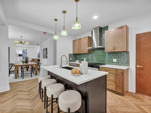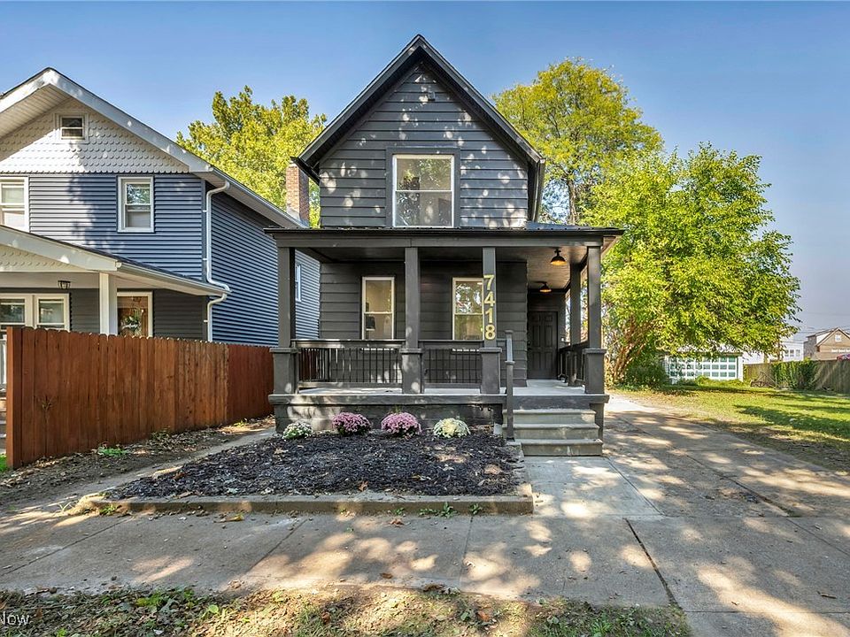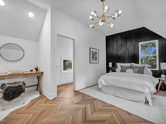 Prepare to be WOW'D! This completely custom, professionally rehabbed home is ready for a new owner. This beauty was taken down to the studs and rebuilt with energy efficiency, comfort, and style in mind. The updates to this home are too many to list. Upon entering, you will be struck by the herringbone flooring throughout the home and impressed by the open layout. The living room is in the front of the house, and there you will find your fireplace as well as a custom bookshelf (MAKE SURE TO PUSH IT). The dining room features a dry bar and is open to the kitchen. The kitchen features an all-SMART appliance package. Off the kitchen, you'll find your laundry room, equipped with a sink, and the first of three full bathrooms. The back of the home consists of 1 of 2 primary bedrooms. (One on the main floor and one that is the entire 2nd floor). The main floor primary suite includes a private porch, a walk-in closet, and an en-suite bathroom with a heated towel bar. Upstairs, you will find a massive Primary Suite which consists of a primary bath with a heated towel bar, walk-in his/her closet, her/her closets, or his/his closets, and lofty ceilings. The home features a full basement with access both inside and outside, providing ample room for storage or a wine room you may not have known you needed. Outside, you'll find both a front and back porch, newly planted grass, and a brand-new Garage. This location is unbeatable as you are just minutes from Edgewater, the Lake, Battery Park, Gordon Square, and Downtown Cleveland. This property is being tax-abated for 15 years. Schedule your private showing now.