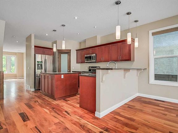 Welcome to this beautifully finished and thoughtfully designed original owner two-storey home located in the vibrant and family-friendly community of Bowness. Step inside to discover a bright and open main floor layout, flooded with natural light and designed for both everyday living and entertaining. The main living area features rich hardwood flooring, a modern color palette, and a seamless flow between spaces. At the heart of the home lies a beautifully appointed kitchen equipped with granite countertops, stainless steel appliances, ample cabinetry, corner pantry and a central island—perfect for family gatherings or casual dining. The open-concept dining and living areas create a warm and inviting atmosphere for hosting or relaxing with loved ones. Upstairs, you’ll find three generously sized bedrooms, including an impressive king-sized primary retreat complete with a walk-in closet and a spa-inspired 5-piece ensuite featuring dual sinks, a deep soaker tub, and a separate glass shower. The upper level offers both comfort and functionality for growing families or those needing versatile space. The fully developed lower level adds even more livable square footage and is ideal for recreation, entertainment, or guest accommodation. A spacious rec room is pre-wired for a full home theatre system, and rough-ins are already in place for a wet bar, offering the potential to create the ultimate entertainment zone. A fourth bedroom, a stylish 3-piece bathroom with heated floors, and ample storage complete the lower level, making it as practical as it is comfortable. Additional highlights include Smart Home wiring throughout the entire home, offering future-ready convenience for security, lighting, and entertainment systems. Walk out to the backyard with a full width deck including a gas line for the BBQ. Lots of room for the kids to play and a separate rear parking pad that can accommodate two vehicles. Bowness is one of Calgary’s most charming and established communities, blending small-town character with big-city convenience. Nestled along the Bow River, it offers beautiful parks, scenic pathways, and quick access to Bowness Park, with Canada Olympic Park just minutes away. Families enjoy excellent parks and playground along with nearby schools and a welcoming, community-focused atmosphere, all while being perfectly positioned between downtown Calgary and the majestic Rocky Mountains. Quick access to Stoney Trail Ring Road and Highway 16 make this the perfect spot to get around the city during the week and out to Banff for the weekend. This is truly the ideal balance of urban convenience and natural beauty, Bowness is as practical as it is desirable, making it one of the city’s most sought-after places to call home.