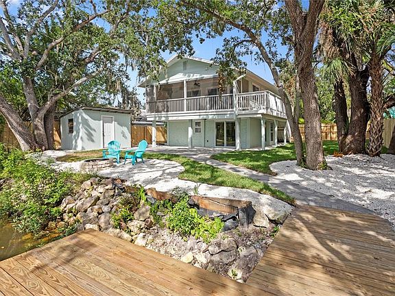 *NOW OFFERING A $5,000 CREDIT TOWARD CLOSING COSTS OR RATE BUYDOWN WITH ACCEPTABLE TERMS.* This spectacular fully remodeled 3 bedroom, 2.5 bathroom Florida style home has approximately 60 feet of saltwater canal frontage with direct access to Mobbly Bay and Tampa Bay - easily take your boat or kayak out on the bay! Enjoy water views from most rooms in this home, which has a great floor plan for entertaining. Enter into the first floor family room with a natural wood entry accent wall, dry bar and bay windows. The walk out primary bedroom to the backyard and has a walk-in closet and a sleek and modern en-suite bathroom with double vanity, a large shower with multiple shower heads and beautiful floor tile which channels the ocean. A spacious laundry room, half bathroom and several storage closets are also found on the first floor. Upstairs the stunning kitchen has dual-toned cabinets, granite counters with a waterfall edge, a breakfast bar and dining area. Sliding doors open to a second floor screened- in porch and offer sweeping views of the canal from the kitchen and living room. Two additional bedrooms upstairs are spacious and share a renovated full bathroom with shower and tub. The fenced backyard has plenty of yard space as well as a paver patio, crushed shell patio with fire pit, a new wood dock and a storage shed. Renovations have been fully permitted and include new windows and hot water heater. This home also sits on a quiet street in a scenic neighborhood of waterfront properties and beautiful horse farms, and within easy proximity to both Tampa and Saint Petersburg, Tampa International Airport, restaurants, shopping and more.