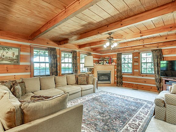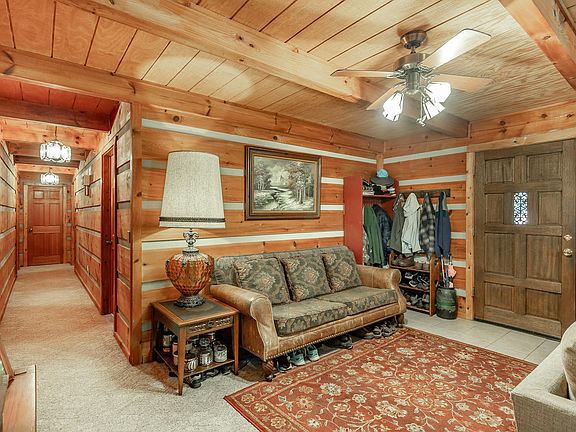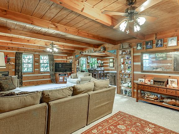 Welcome to your new home at 7419 Chad Rd! This beautiful log home was masterfully designed, has excellent curb appeal and comes with 5 acres of land! The covered front porch runs the full length of the house and boasts postcard worthy views of White Oak Mountain! The covered back porch, which also runs the full length of the house, has a hot tub and has commanding views of your expansive property! Step inside and appreciate the enormous family room, perfect for entertaining, open floor plan, built in display shelves and gas log fireplace! The large master bedroom has a cedar walk-in closet and has a full bath complete with it's own linen closet.