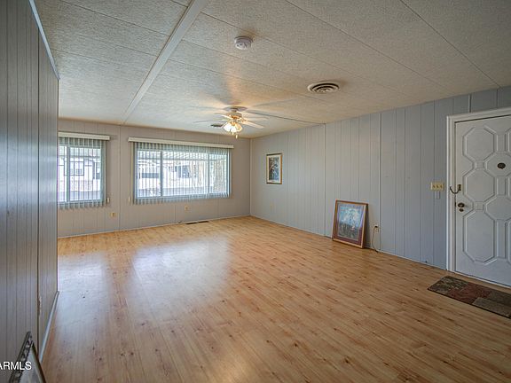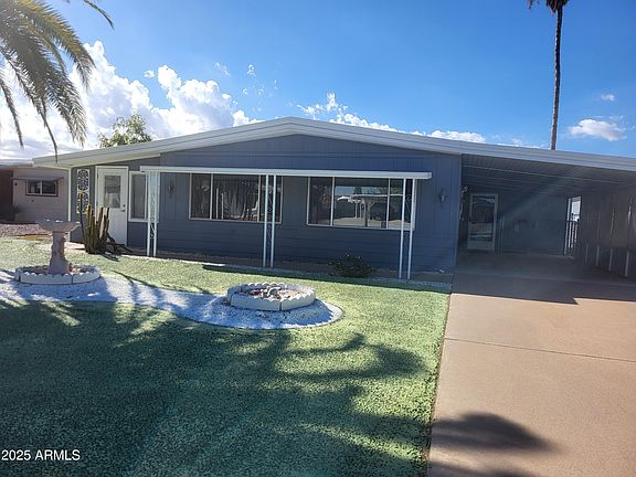 Lots of room for entertaining in this home in an active adult community. Kitchen was remodeled in 2022 with new cabinets, back splash, sink, countertops and flooring. New flooring throughout home except for living room or dining room. Exterior painted in 2023. Primary bath shower and vanity remodeled in 2022. Exit from Primary bedroom to Arizona room. Arizona room for hobby area. Office area in Arizona room. Area at front of carport for golf cart with plug in. Workshop area with lots of room for storage also. Community offers swimming pool & spa, billiards room, RV camping club, bingo, potlucks, pickleball, bocce ball, horseshoes, cards, drama club and more. Close to shopping, Banner Baywood hospital, golf courses and Hwys 60 & 202. Owner run community with no lot rent.