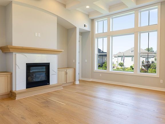 Our beautiful Idlewood Villa is now complete and available for a quick move in! This Stunning Sun-filled home features 12' Coffered Ceiling and wall of windows! A Slab on Grade home with everything you need and want on the one floor! including 3 bedrooms (or 2 bedrooms + flex rm/office with French doors). Vaulted 4-season porch! Owner's bedroom features box vault and large closet, beautiful Owner's bathroom with tile to ceiling shower and separate tub and separate water closet with door. And you'll also love the huge kitchen center island perfect for entertaining, stainless steel appliances, walk-in pantry, large Dining room, and beautiful fireplace. Convenient mudroom, off the Spacious 2-car garage and large main-floor laundry with sink, plus attic storage in the garage. Prices, square footage, and availability are subject to change without notice. Photos, virtual/video tours, and /or illustrations may not depict actual home plan configuration. Features, materials, and finishes shown may contain options that are not included in the price.