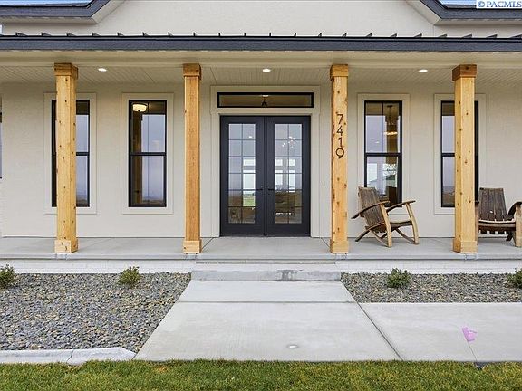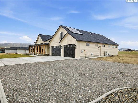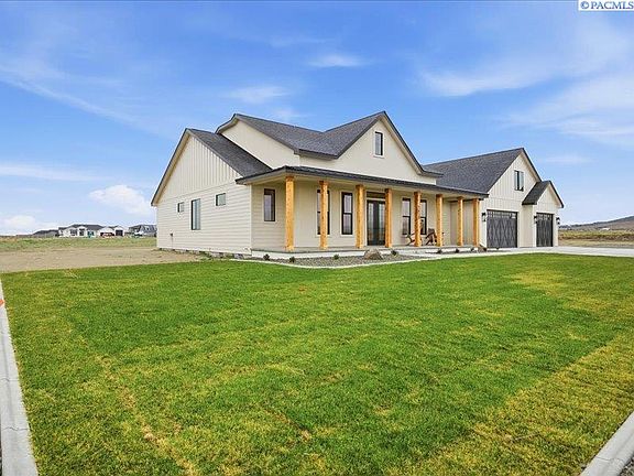 MLS# 286089 Now complete and move in ready! Welcome to Harvest Ridge, where timeless design meets wide open space on a full acre in one of the Tri Cities’ most peaceful acreage communities. This stunning new Brett Lott home offers over 4,000 sq ft of beautifully designed, light filled living with 5 bedrooms and 4 baths. A flexible floor plan includes a separate office and a bonus room with its own mini split that easily functions as a fifth bedroom, ideal for guests, a playroom, or a home gym. Entertain with ease in the gourmet kitchen featuring a 36 inch Bosch gas range, built in fridge and freezer, and generous prep space, all overlooking spacious living areas accentuated by vaulted ceilings, black framed floor to ceiling windows, rich engineered hardwoods, and custom archways. The luxurious primary suite showcases stained ceiling beams, a spa inspired bath with freestanding tub, and a walk through shower. A 4 car garage provides ample room for vehicles and toys, while included landscaping enhances curb appeal. Preferred lender Eric Melling is offering incentives of up to 1 percent toward a rate buy up or closing costs are available. Don’t miss your chance to own this exceptional luxury acreage home!