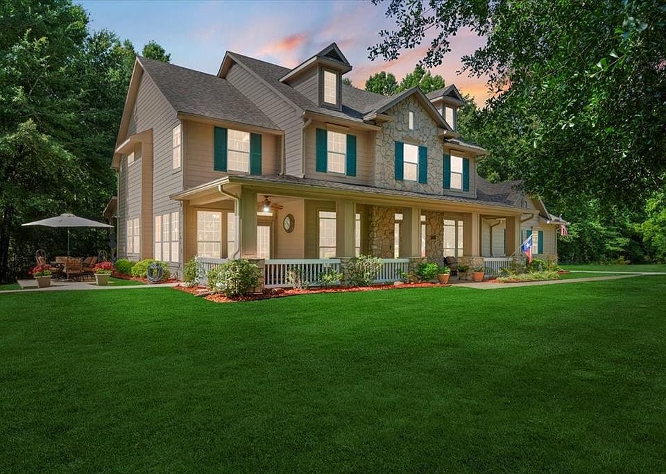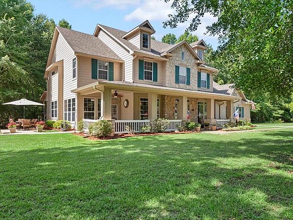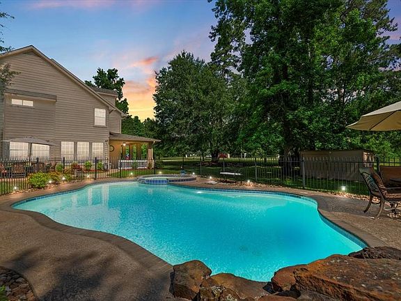 Beautiful and well maintained 4 Bedroom, 3.5 bath home now available! Step inside and discover an inviting open-concept design that seamlessly connects the living, dining, and kitchen areas, creating a warm and welcoming atmosphere. The primary bedroom is downstairs w/ large ensuite. Three additional bedrooms upstairs offer plenty of space for family or guests along with a large living area and dedicated game room, ensuring comfort and versatility. This special property is tucked away on a 2.43 acre corner lot in the highly sought after neighborhood of Montgomery Trace. Experience the perfect blend of peaceful country charm and the convenience of nearby shops, restaurants and easy access to Lake Conroe. Enjoy spending time outside in your private pool with attached spa. This home has beautiful patios and porches and has creek that runs at the back of the property after a good rain! Home offers a full home generator, water softener and mature trees. Welcome home!