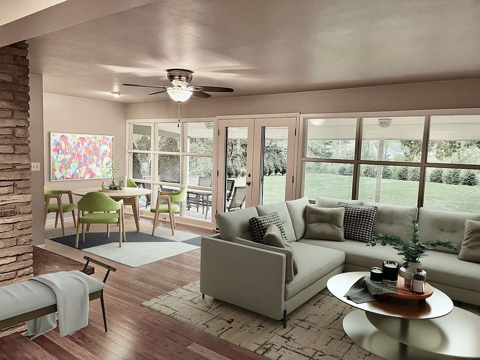 Attention all Mid Century Home lovers Available NOW! This 2 bedroom with a den or 3 bedroom immaculate ranch home is situated on a generous size lot located on one of Fox Point's most desirable streets. Upon arrival, you'll be welcomed by the bright red door with multiple windows and a natural stone wall. On the flip side of the foyer is where you'll find the great room which boasts an abundance of floor to ceiling windows that overlook a covered stone patio and a deep backyard. The dining room off the kitchen can also be used as a den or office. You will love the combo of the gleaming bamboo wood floors and natural Tennessee stone throughout. Brand new full modern bathroom boast natural marble flooring and marble vanity top. The brand new half bath has a floating toilet and sink. Lovely kitchen offers beautiful wood cabinetry and a brand new stove! Leading into the full is new carpeting on stairs and offers a full size washer/dryer. Entire interior and exterior are freshly painted. Requirements include good credit, income must = 3x monthly rent or more, clean background, no criminal history, no student or group home housing, no prior evictions, good renting history, and no short term leases Some photos have been virtually staged
