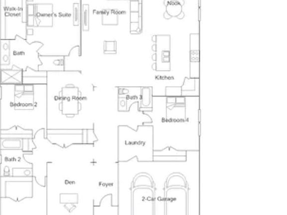 This single-story home is the largest plan in the collection and features a den, a formal dining room and an open concept layout in the main living area. The outdoor patio connects to the nook for easy outdoor living. Throughout the home are four comfortable bedrooms, including the owner’s suite. Estimated Completion August 2023. *Photos are for illustrative purposes only.