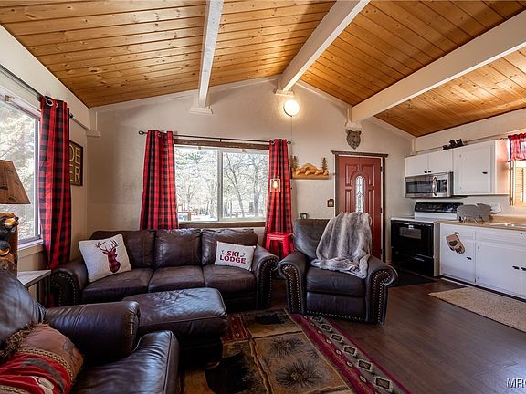Find peace and restoration with views of nature and hiking trail access close by. Enjoy your morning coffee with expansive view of the pines on the front deck. Minutes to Snow Summit and Bear Mountain Ski Resorts, discover a plethora of winter activities within close reach. Entertainment, savory restaurants, vintage shops, local coffee roasters, all await you in the village. The cabin's unique location is immersed in nature, with wild critters that might pay you a visit at any time of day. This light and bright open floorplan offers the two cozy bedrooms on the main floor. Enjoy nature while entertaining and grilling on a BBQ. Enjoy a glass of your favorite beverage while enjoying the fresh alpine air, towering trees amongst the stars. Watch nature in all it's splendor. Plenty of room to entertain family and friends. The living room brings all the cozy comforts of a relaxing space to unwind and enjoy a good book. Enjoy your favorite glass of wine in front of the majestic fireplace while staying cozy warm during a mountain storm. This exceptional living space offers light pouring in from multiple sides. Laundry located inside off the main hall. It is obvious when you walk into the cabin that the sellers have kept the property well maintained. This amazing property offers a large shed to store all the toys. Is fully fenced to protect your furry family members and kiddos. Plenty of outside parking for your boat or small RV. Enjoy the large deck with plenty of space for seating to host your outdoor wonderland dinner party or just to relax in nature while escaping your everyday life. Don't miss out on the "potential" that this gem has to offer as an income generating vacation rental.