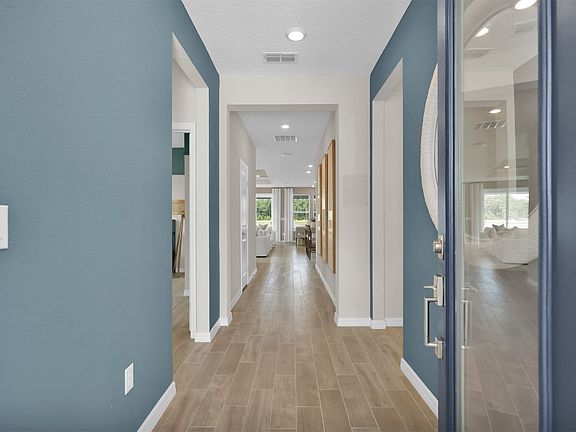 Welcome to the beautifully designed Mystique featuring 2 Bedrooms, 2 Bathrooms, and a versatile Flex Room. The Open Layout centers around a Gathering Room with Luxury Vinyl Plank flooring that flows into a gorgeous Gourmet Kitchen. You'll love the built-in Whirlpool Appliances, Cabinet Wood Hood, white Cabinetry, Quartz Countertops, white Flow Picket Backsplash, Walk-In Pantry, and large Island that opens to the Covered Lanai. Unwind in the private Owner's Suite with a spa-inspired Ensuite featuring a Walk-In Shower, Dual-Sink Vanity with Quartz Countertops, a private Water Closet, and a Walk-In Closet. This home is packed with thoughtful upgrades, including a Smart Home package, upgraded Laundry with added Sink, Outdoor Kitchen and Water Softener Pre-Plumb, 8' Interior Doors, and a Refrigerator. Plus, enjoy resort-style living with access to community amenities like a clubhouse, restaurant, pool, pickleball courts, and more. Come experience for yourself—schedule your tour today!