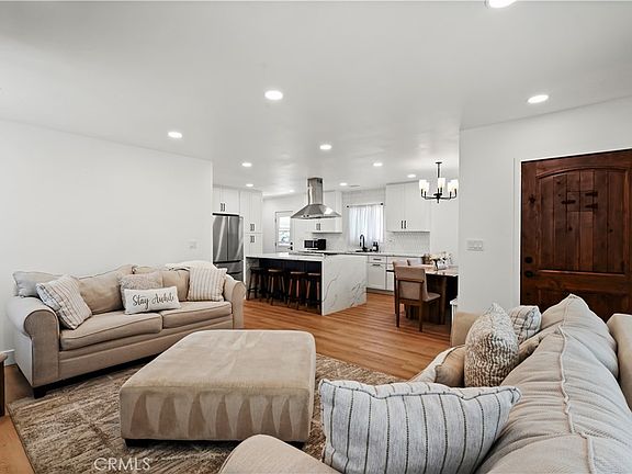 Welcome to 742 E 91st St, Los Angeles — a stunning turnkey 3-bedroom, 2-bath Spanish Bungalow that perfectly blends timeless charm with modern comfort living. Begin at the inviting front porch, framed by a gorgeous, heavy-duty Spanish-style wood door that sets the tone for what’s inside. Step through the entry and you’ll immediately feel at home with abundant natural light, a cozy electric fireplace, and elegant white oak–style vinyl flooring flowing throughout the home. At the heart of the residence, the open-concept kitchen is every chef’s dream. Featuring a professional-grade oversized range with an extra-large hood, complemented by a full suite of sleek stainless-steel appliances—including stove, refrigerator, and dishwasher. A striking quartz waterfall island, two-tone cabinetry in crisp white and rich navy, a modern black sink, and a designer tile backsplash creates a space that is as functional, clean, and beautiful. Just off the kitchen, a bright breakfast nook offers the perfect spot for dining. The spacious primary suite is a private retreat with sliding doors that open directly to the backyard. Its ensuite bath boasts a quartz double-sink vanity, a walk-in shower, and tile flooring. Two additional generously sized bedrooms and a second remodeled restroom, completed with a modern double-sink vanity— perfect for the family or guests. For added comfort and functionality, enjoy a dedicated laundry area inside the home with a stackable stainless-steel washer and dryer that is included, and to add the cherry on top, this property also offers central HVAC, with A/C and heating. Step outside and enjoy the expansive private backyard, designed for both relaxation and entertaining. Unwind beneath the peaceful cabana or envision endless possibilities with the detached garage, featuring soaring ceilings and a wall to wall sliding door—ideal for a gym, game room, studio, or potential ADU. Additional upgrades include a newer electrical panel and dual-pane windows. Centrally located with easy access to the 105 and 110 freeways, Downtown LA, USC, the Kia Forum, SoFi Stadium, Intuit Dome, public transportation, and more—this home offers the perfect blend of Spanish charm and contemporary living- truly this beauty has it all.