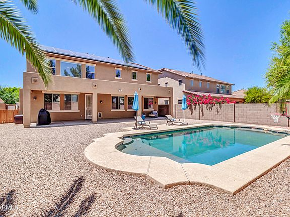 Spacious 4 bed, 3 bath home on an oversized lot in desirable Gilbert! You'll love the expansive open floor plan with multiple living areas—perfect for both relaxing and entertaining. The kitchen is a dream with granite countertops, dark wood cabinetry, black appliances, and a large island ideal for gatherings. The oversized primary suite is filled with natural light and offers a generous en suite featuring a separate Roman tub, step-in shower, and walk-in closet. Step outside to a backyard built for fun and relaxation—complete with desert landscaping, a sparkling pool, a huge covered patio, and tons of space to entertain. Don't miss this one!