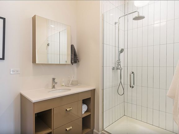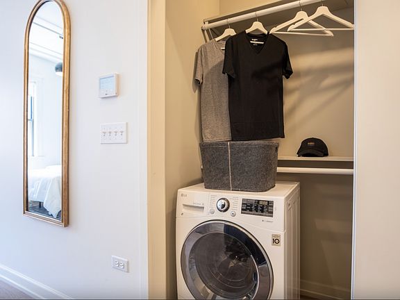 Two rooftop decksOutdoor rooftop poolClassic subway tile backsplashIn-unit washer and dryerRooftop clubhouseElegant glass-enclosed rain showerCustom cabinetry