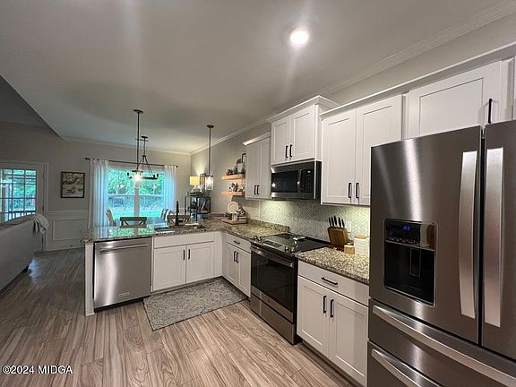 This beautiful modern home in historic Jones county is waiting for you! The 3-bedroom, 2-bathroom open floor plan offers the perfect blend of comfort and style. The home is barely three years old and has been very well maintained. Step into the inviting living area, complete with a cozy electric fireplace that adds warmth and ambiance. The kitchen features granite countertops and ample cabinet space for all your culinary needs. When you step out the back door you will find a screened-in porch, ideal for relaxing with a morning coffee or evening breeze. The fenced-in backyard is perfect for pets, children, or gardening enthusiasts. An additional highlight of the yard includes an irrigation system to keep your lawn lush and green. Don't miss the opportunity to make this exceptional property in Jones county your new home!