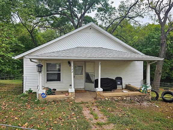 2 bedroom, 1 bath house in West Plains, MO with covered front porch, 2 storage buildings, big yard, shade trees on a dead end street.