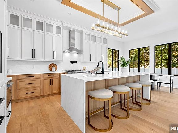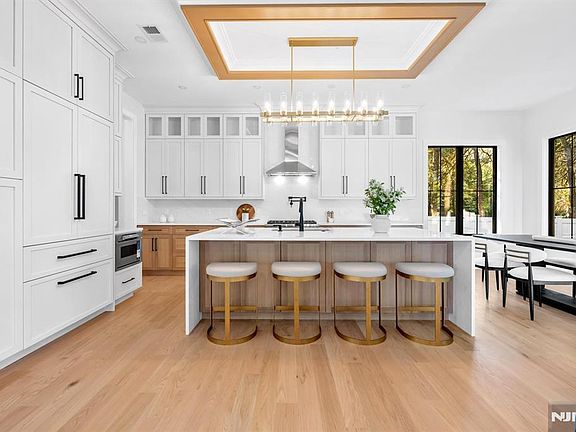 Move in Ready New construction in the Heart of Glen Rock offering approx. 5,300 Sq ft of luxurious living across 3 beautifully finished levels. This 6-bedroom, 5.5-bath home impresses with soaring 10' ceilings, grand two-story foyer, and a bright open-concept layout ideal for entertaining. The main level features a formal dining room, expansive great room with quartz gas fireplace, and a chef's kitchen complete with premium appliances, breakfast nook, and a fully outfitted butler's pantry. A guest suite with full bath, designer powder room, and built-in mudroom complete the first floor. Upstairs offers 9' ceilings, 4 spacious bedrooms including a stunning primary suite with tray ceiling and rail lighting, custom his/her closets, and a spa-inspired bath with heated floors, freestanding soaking tub, and dual-head shower. The fully finished lower level includes a glass-enclosed gym, wet bar with wine fridge, large rec room, guest suite, and bonus room. Designer trim work throughout includes boxed ceilings and custom wall moldings. The exterior boasts Hardie siding, Azek trim, Andersen 400 windows, paver driveway and patio, fenced yard, and sleek architectural roofing. Smart home features include Ring cameras, centralized vacuum, 2-zone HVAC, and more. Located close to NYC transit and top-rated Blue Ribbon Schools—this home has it all!