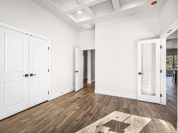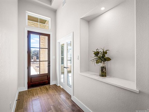 Completed in January 2026, this thoughtfully designed two-story, 4-bedroom, 3.5-bath home with a 3-car garage is built for true Texas living, offering space to spread out and live comfortably. Set on 1.16 acres in the gated Serenity Oaks community in Spring Branch, this brand-new home blends Hill Country serenity, modern design, and everyday functionality-backed by a 10-year builder warranty for added peace of mind. The main level features three bedrooms downstairs, along with a dedicated office ideal for working from home, studying, or creative pursuits. Tile flooring flows throughout the main living areas, while the bedrooms offer carpeted comfort. The open-concept kitchen, dining, and living spaces create a warm, inviting environment designed for easy everyday living and effortless entertaining. Upstairs, the fourth bedroom includes a full bathroom and provides exceptional flexibility-use it as a private guest suite, game room, media room, or extra living space. The options are limitless with the thoughtful layout this home provides. Outside, the extended deck space invites you to slow down and enjoy peaceful Hill Country views-perfect for morning coffee, evening sunsets, or entertaining under wide Texas skies. With over an acre of land, there's plenty of room to create an outdoor space that fits your lifestyle. Living in Serenity Oaks means more than just owning a home. Residents enjoy access to a private Guadalupe River park, neighborhood pool, playground, basketball court, and picnic pavilion, all within a quiet, gated community that feels tucked away while still close to everyday conveniences.
