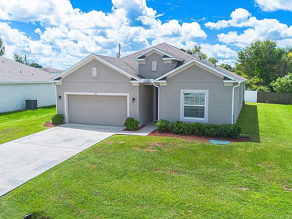 Stunning 4-bedroom 2-bathroom home built in 2019 with Smart features, combines comfort with modern convenience. From the moment you enter, you'll notice the open layout and elegant porcelain tile floors flowing throughout the main living areas.The heart of the home is the chef's kitchen, complete with a large island, stylish pendant lighting, and an oversized pantry for all your storage needs. Sliders open wide to seamlessly connect indoor and outdoor living, creating the perfect space for entertaining. The private primary suite is a true retreat, featuring a walk-in closet and a spa-inspired ensuite with a soaker tub, separate shower, and dual vanities. This home is thoughtfully equipped with smart wiring, smart switches, and remote or app-controlled fan systems, making it both efficient and convenient. Additional upgrades include wiring for a generator, motion-sensor security lights, and Night Owl security cameras in the master closet. The property offers plenty of space for outdoor living in a private setting. The 2019 roof adds peace of mind, and the home's modern construction ensures durability and energy efficiency. If you're looking for a move-in ready home that blends style, comfort, and today's smart-home technology, this is the one. It's a short dirve to many amenties such as the Botanical Gardens, golf, baseball, nature preserves, community events in additon to nearby Tradition Square for shopping and dining. Easy communte to Miami or Orlando with I95 near by.